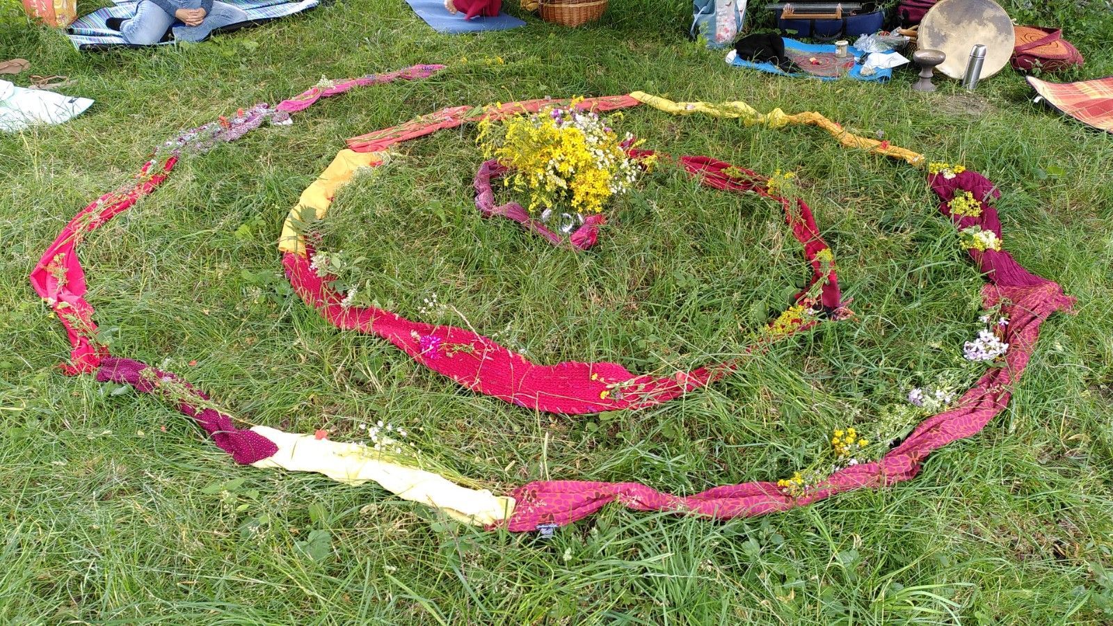 Im Ritual zum Jahreskreisfest tauchen wir ein in die Natur und die Fülle der wunderbaren Sonnwendpflanzen: natürlich das wie kein anderes Kraut die Kraft der Sonne verkörpernde Johanniskraut, das mit seinem herrlichen Geruch glücklich machende echte Labkraut und die kraftvolle, aufrechte Frauenpflanze Schafgarbe. Aus ihnen können wir die kleinen, magischen Sonnwendsträußchen binden, die die Energie dieser herrlichen Zeit bündeln und in sich tragen und die wir an jemanden weiter schenken, der oder die diese gerade sehr braucht.  Auch gehen wir jedes Jahr die traditionelle Spirale, die das uralte spirituelle Symbol für Wendepunkte (des Jahres, des Lebens….) ist, aber auch dafür steht, ins tiefste Innerste zu gehen – ins Innerste von uns Selbst oder ganz in die Tiefe einer Erfahrung einzutauchen. In der Mitte der Spirale werden wir die Kraft dieser Zeit, das Wunder des Lebens, das Licht und die Wärme der hochstehenden Sonne ganz bewusst in uns aufnehmen, uns damit befüllen bis in jede Körperzelle, so dass wir gestärkt und aufgetankt bis zum Rand mit dieser kraftvollen Energie in die zweite Hälfte des Jahres weiter gehen können. Denn wir brauchen die Kraft dieser "Hohen-Zeit" (so der alte Name dieses Festes)! Zum Einen um das auszugleichen, was an Kraftanstrengung nach dem langen Winter oder auch nach herausfordernden Zeiten in unserem Leben hinter uns liegt und um zu bewältigen, was uns aktuell beschäftigt, was uns Ängste und Sorgen bereitet. Zum Anderen auch für die zweite Jahreshälfte, die vor uns liegt. Wir alle kennen das, wenn dann der Herbst kommt und wir das Gefühl haben, den Sommer noch gar nicht gehabt zu haben, nicht genährt, nicht „voll“ zu sein. Wir schieben das oft auf das Wetter oder andere Umstände wie Stress, zu viele Verpflichtungen etc. Ich denke aber, dass das meist eher daran liegt, dass wir die Kraft des Sommers, der Sonne und des Lichts nicht bewusst erlebt haben, nicht bewusst in uns aufgenommen und ja – nicht zelebriert haben. Daher ist das Leben mit den Jahreskreisfesten so wunderbar und hilfreich, denn so werden wir nie das Gefühl haben, eine Jahreszeit, jetzt speziell den Sommer und die Zeit des meisten Lichts, des vollen Lebens, „verpasst“ zu haben. Wir gehen immer bewusst mit der Energie der Zeit, erleben uns als verbunden mit der Kraft der Natur um uns herum und auch mit anderen, gleichgesinnten Menschen im Kreis in einer herzlichen Gemeinschaft. Wir tauchen miteinander tief ein in die Naturerfahrung, wir feiern, singen, trommeln und essen auch zusammen und genießen das Leben und die Leichtigkeit dieser Zeit in vollen Zügen, denn genau das ist die Einladung, die uns die Hohe-Zeit gibt! Folgt Ihr!!